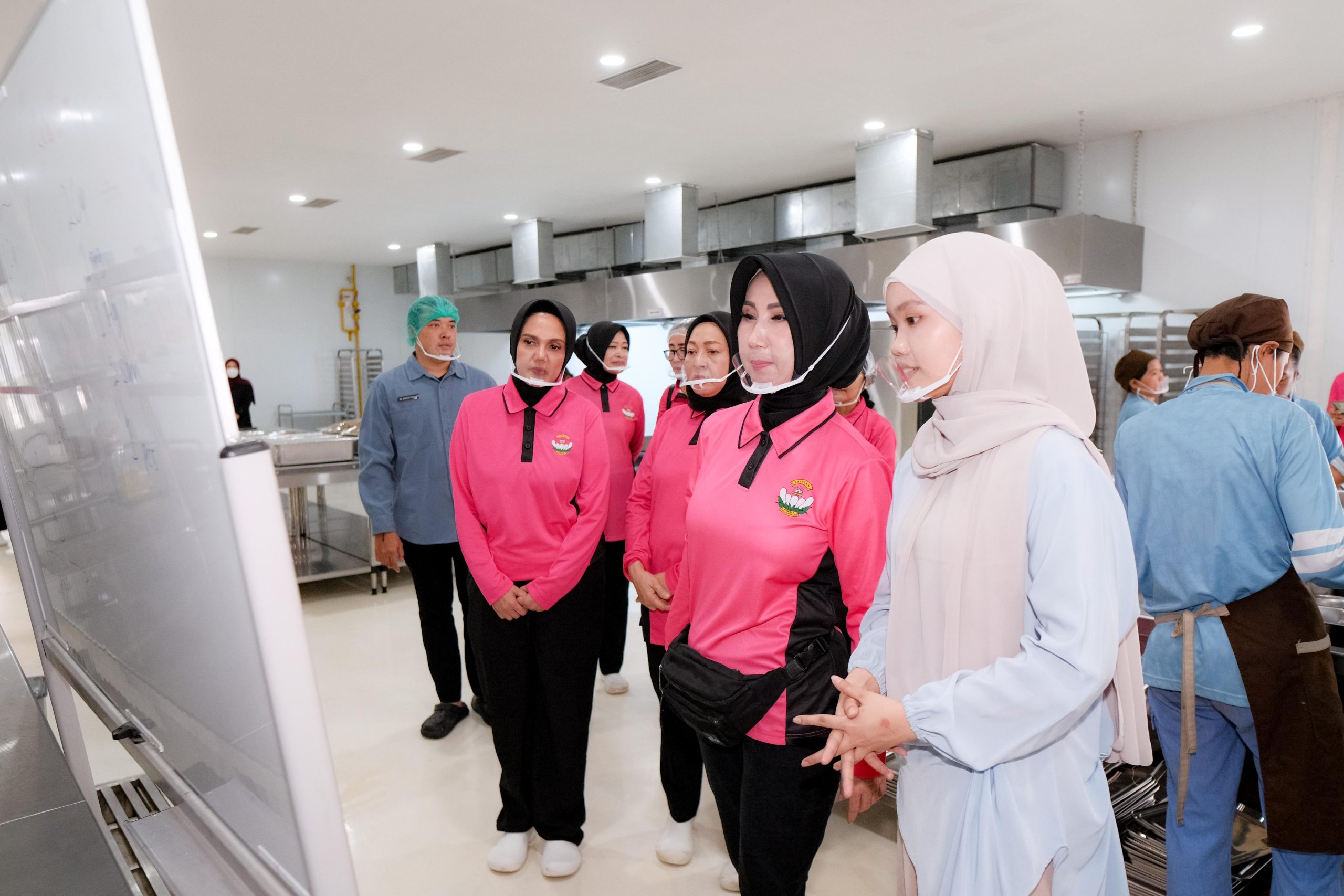 Dalam kunjungan tersebut, Ketua Pengurus Pusat YKB Ny. Winta Wahyu Widada melihat dari dekat proses persiapan hingga pengolahan masakan yang selanjutnya akan didistribusikan kepada penerima.