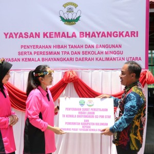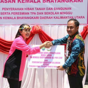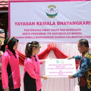 Dalam rangka kunjungan Ketua Pembina YKB Ny.Juliati Sigit Prabowo ke PYKB Daerah Kaltara, telah dilaksanakan Penyerahan Hibah Tanah dan Bangunan untuk TK Kemala Bhayangkari 03 Tanjung Selor dari Pemerintah Kabupaten Bulungan yang diterima langsung oleh Ketua Pembina YKB Ny.Juliati Sigit Prabowo didampingi Ketua Pengurus Pusat YKB Ny.Diana Ahmad Dofiri, Kapolda Kaltara Irjen. Pol. Jonathan Hary Sudwijanto, S.IK., M.Si. dan Ketua PYKBD Kaltara Ny.Dion Hary Sudwijanto.